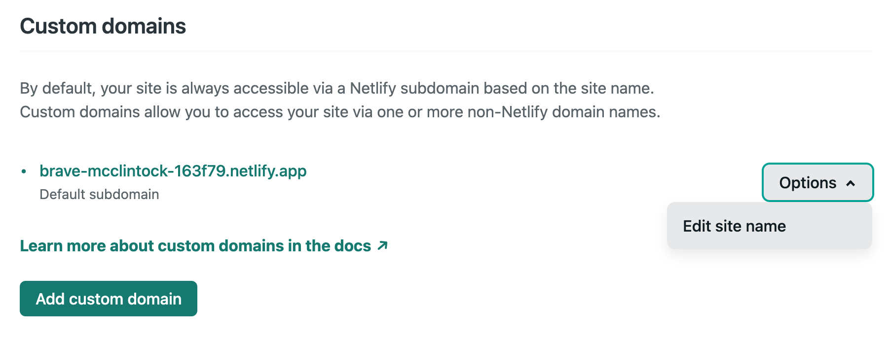 또한 Domain settings 버튼을 클릭하면 아래와 같이 Edit site name 을 통해 netlify.app 앞부분을 자기가 원하는 형태로 바꿀 수도 있다!!