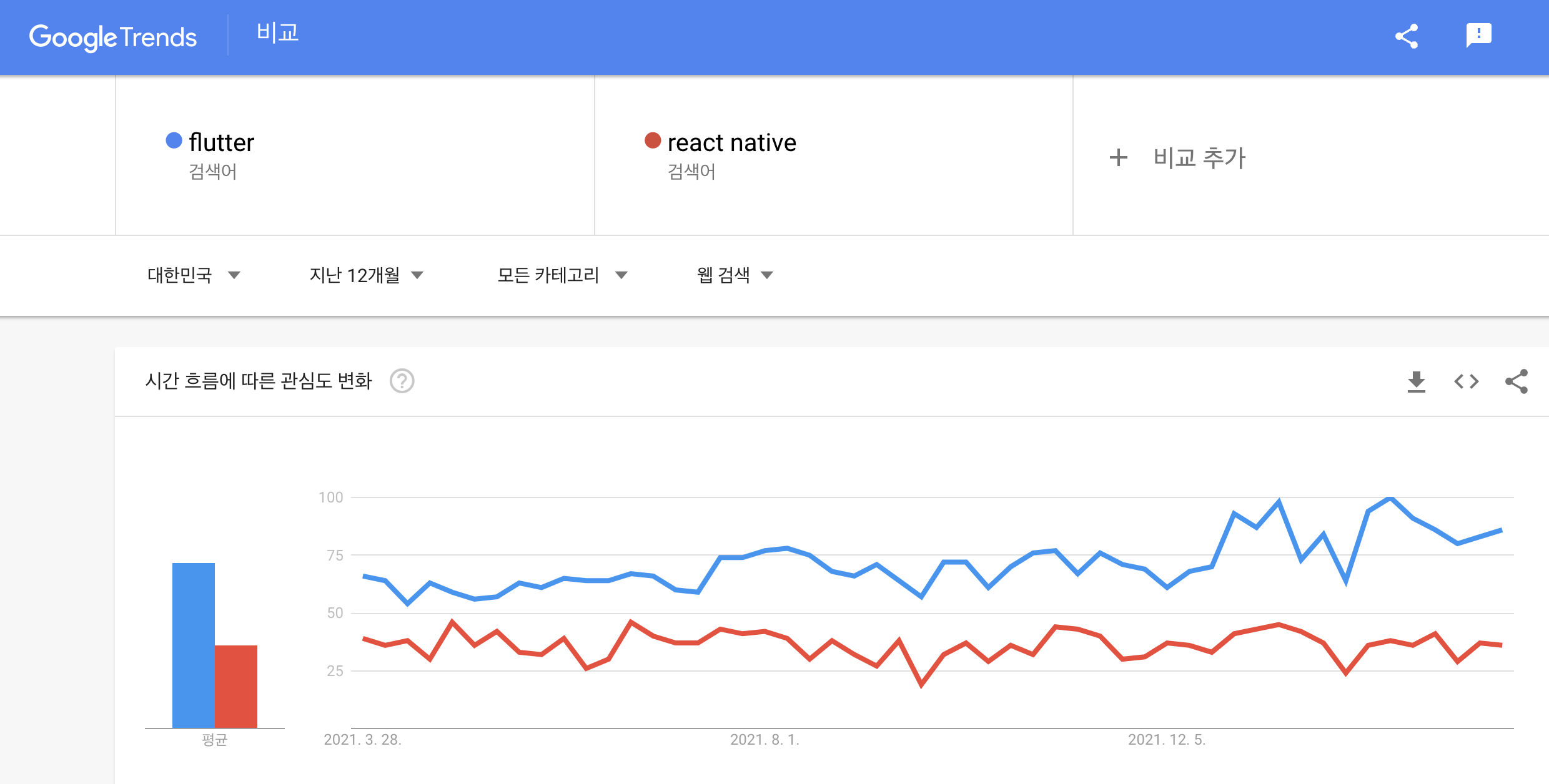 그렇담 선택지는 RN과 Flutter 밖에 없었는데 Flutter 가 쉽고 요즘 핫하다니 모른체 할 수가 없었다.