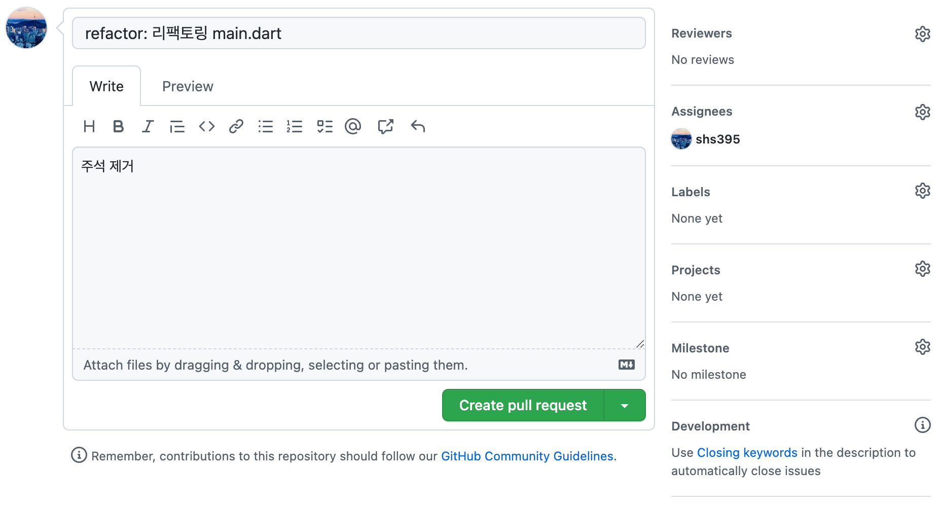 적절한 메시지를 남겨 pull request를 만들어준다.