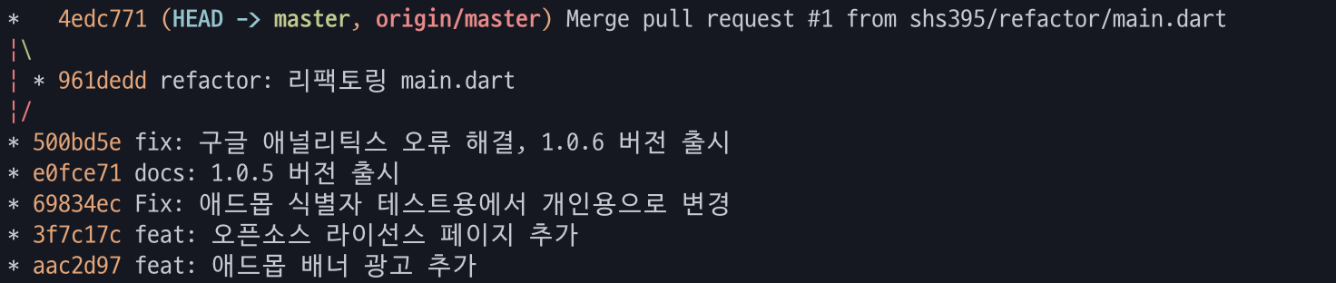 git commit -m "refactor: 리팩토링 main.dart"