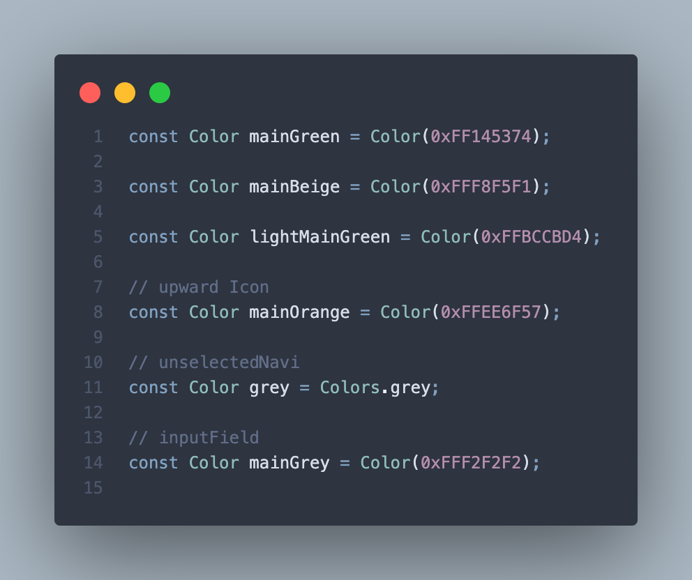 여기서는 /constants/colors.dart 에 AppColor 클래스를 만들어서 관리한다.