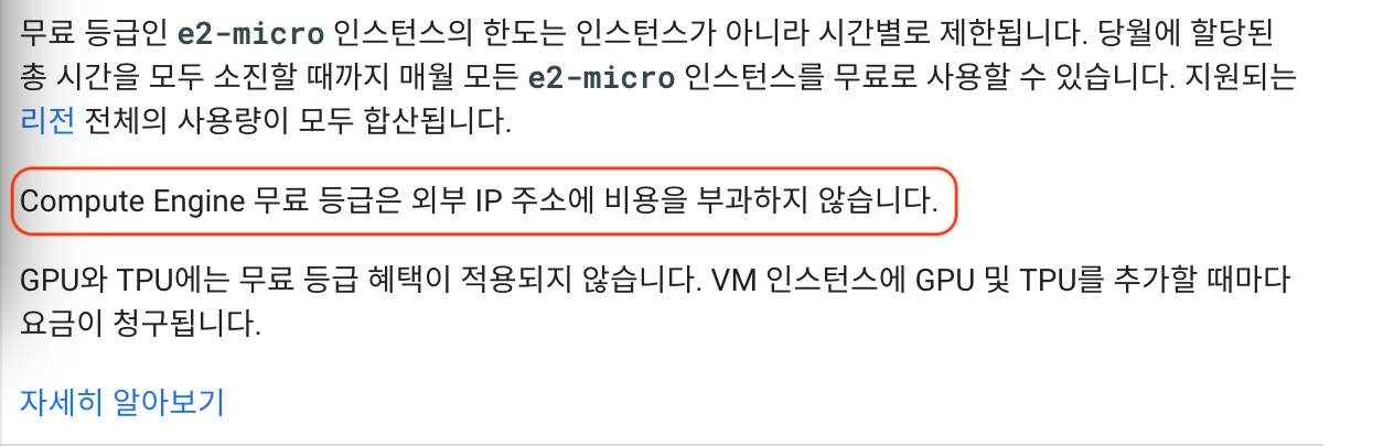 Compute Engine 무료 등급은 외부 IP 주소에 비용을 부과하지 않습니다..?