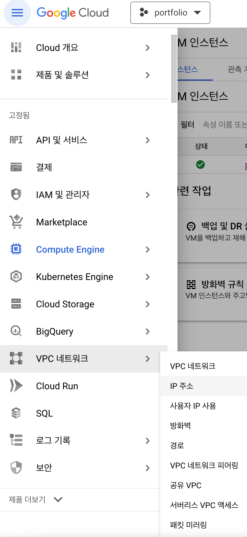 1. VPC 네트워크 -> IP 주소