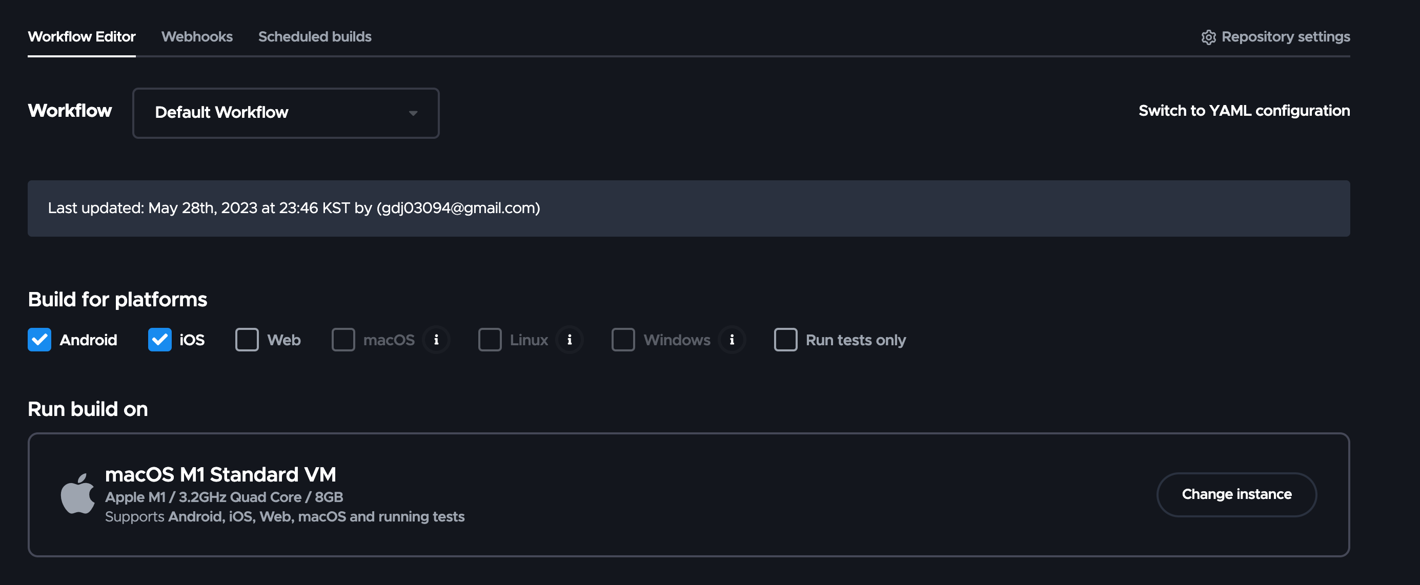 내 앱의 빌드가 오래걸리진 않지만 그래도 빌드 타임이 넉넉한게 좋을 것이라고 생각되었고 Appcircle 월 20번의 빌드는 좀 짠 것 같아서 Codemagic, Bitrise 를 직접 이용해보고 선택하려 했으나,,,