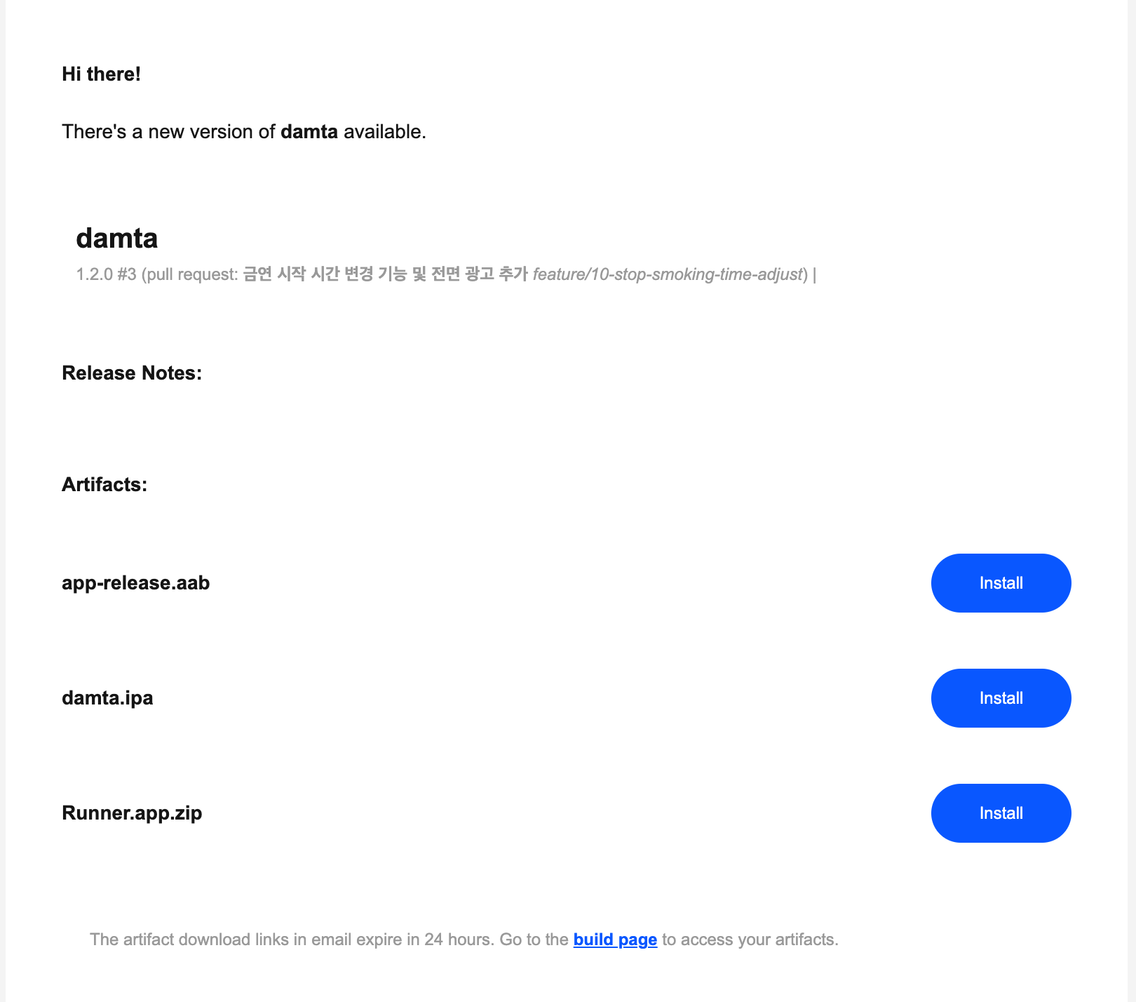 그 feature 브랜치에서 PR을 날리면 플레이스토어와 앱스토어의 내부 테스트, TestFlight 까지 배포해주고