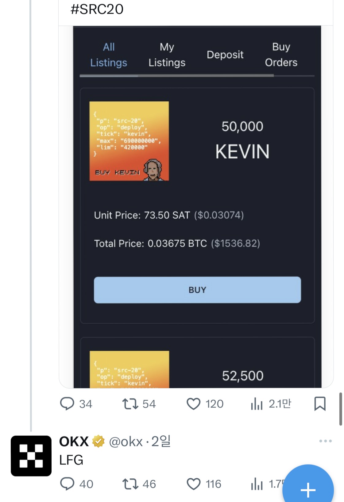 okx 거래소 계정으로 src 관련 글에 LFG 달았다는게 핫하다.