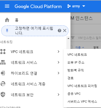 VPC 네트워크 -> 방화벽 규칙에 들어가준다.