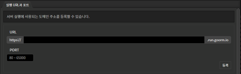 처음에는 헷갈려서 https://설정한이름.run.goorm.io:8000 으로 접속했으나 이미 포트 설정까지 완료된 주소이므로 그냥 주소(https://설정한이름.run.goorm.io)만 입력해서 들어가면 된다.