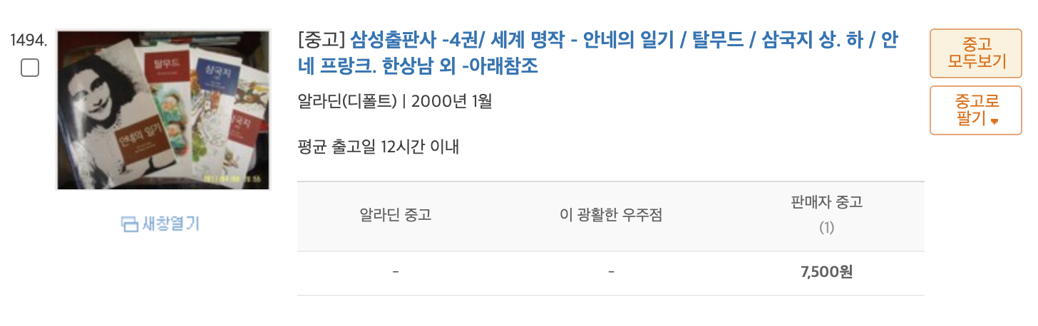 알라딘에 탈무드를 검색하고 발행일이 오래된 순으로 살펴보니 나오는 사진 한 장